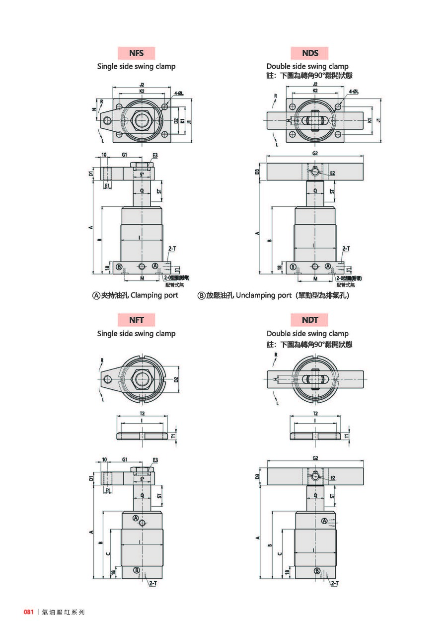 A: 單動式(配管式, 油路板型, 外螺牙配管型), B: 復動式(配管式, 油路板型, 外螺牙配管型)