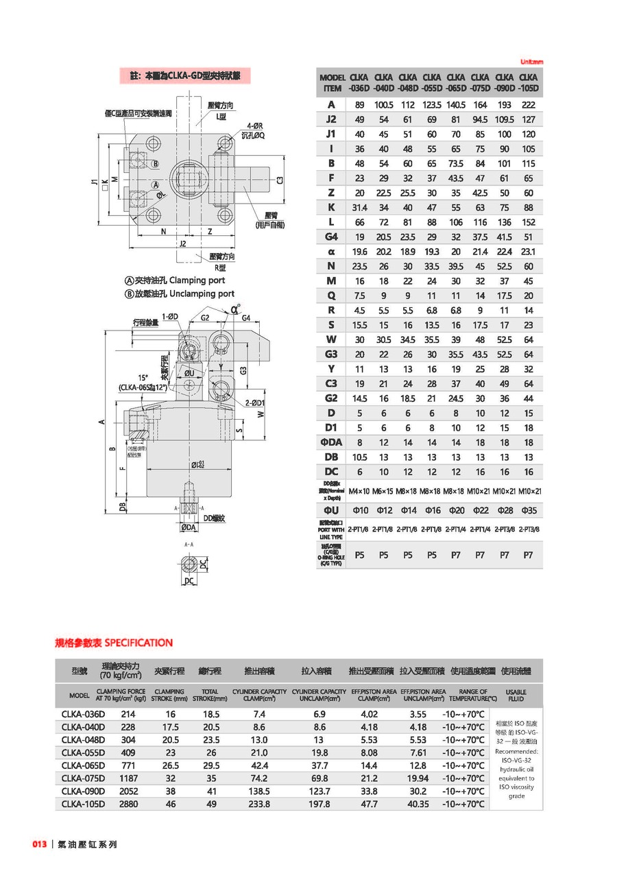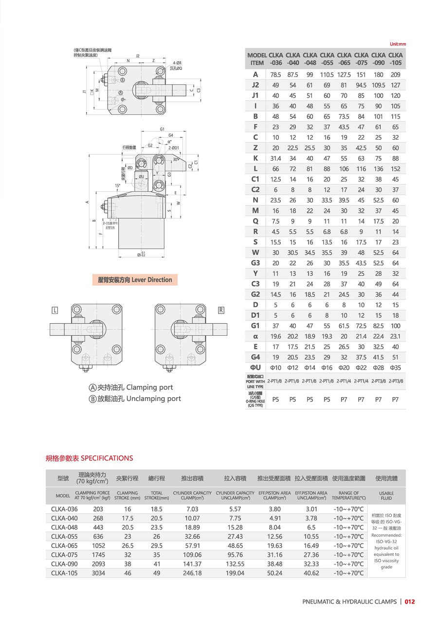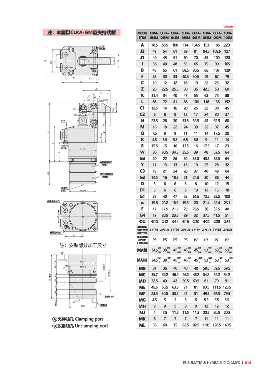 型號 CLKA-036 CLKA-040 CLKA-048 CLKA-055 CLKA-065 CLKA-075 CLKA-090 CLKA-105