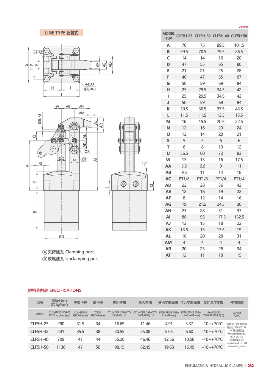 相當于ISO黏度等級的ISO-VG-32一般液壓油。