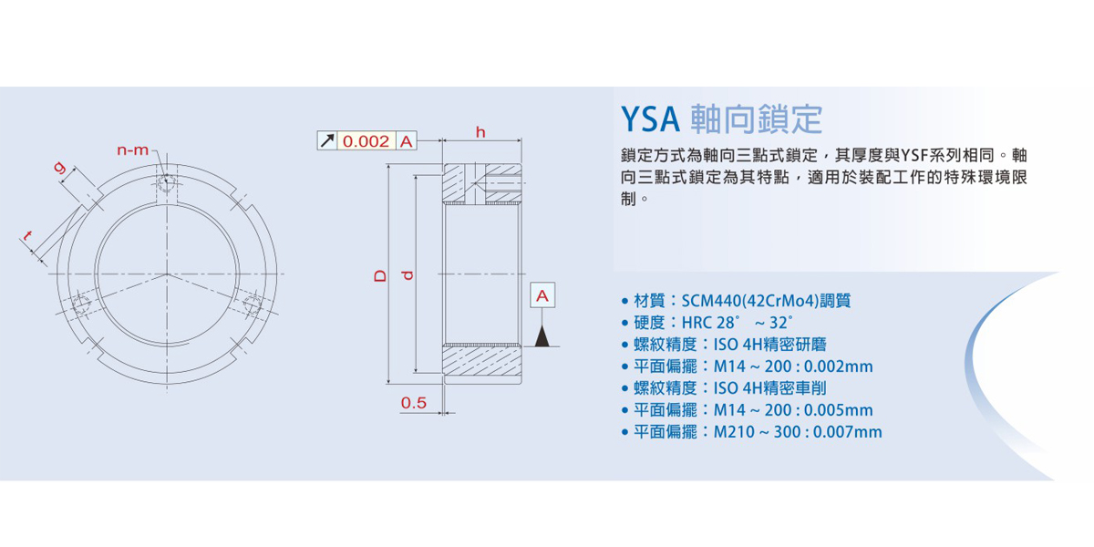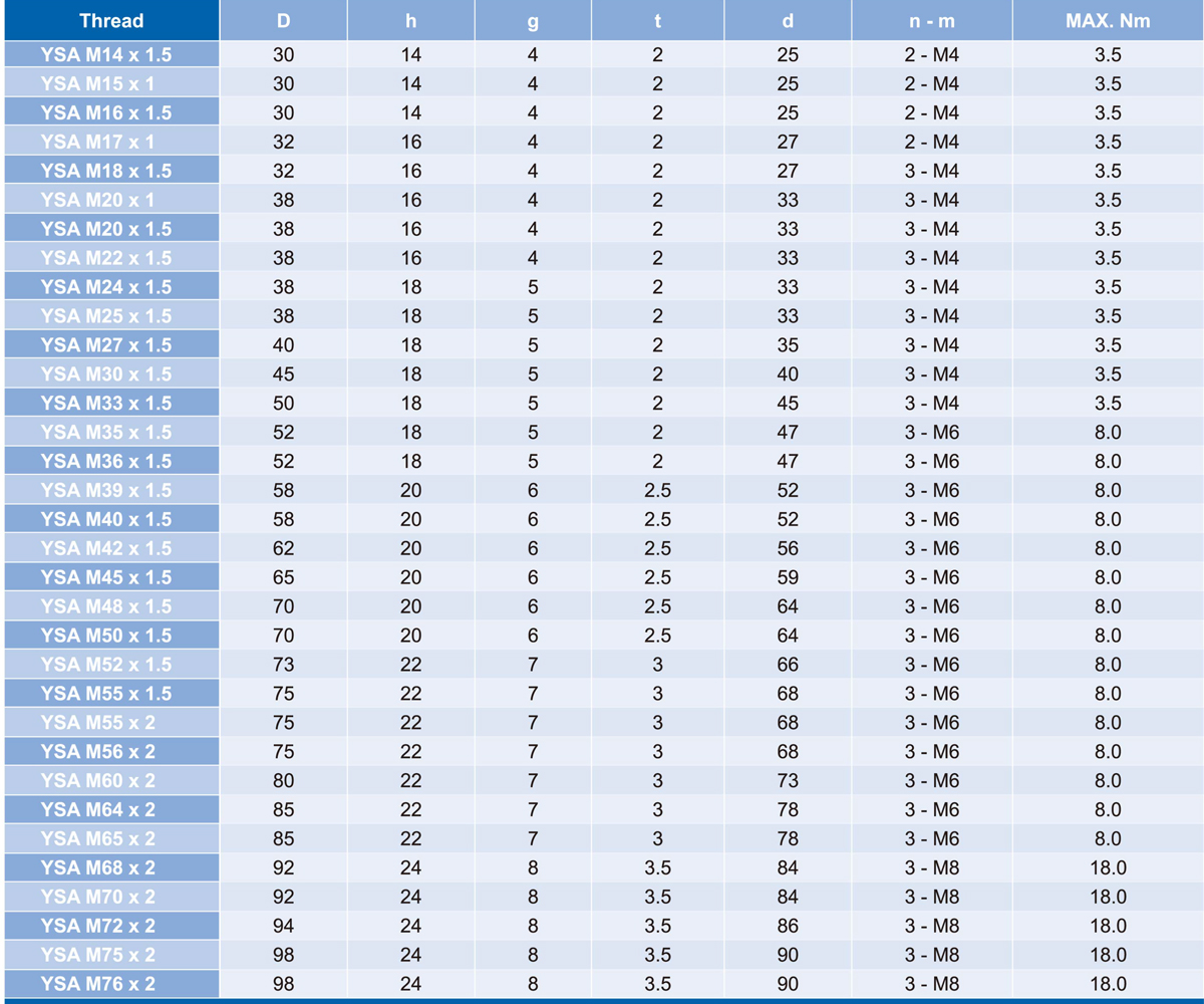 鎖定方式為軸向三點式鎖定,其厚度與YSF系列相同。軸向三點式鎖定為其特點,適用于裝配工作的特殊環境限制。