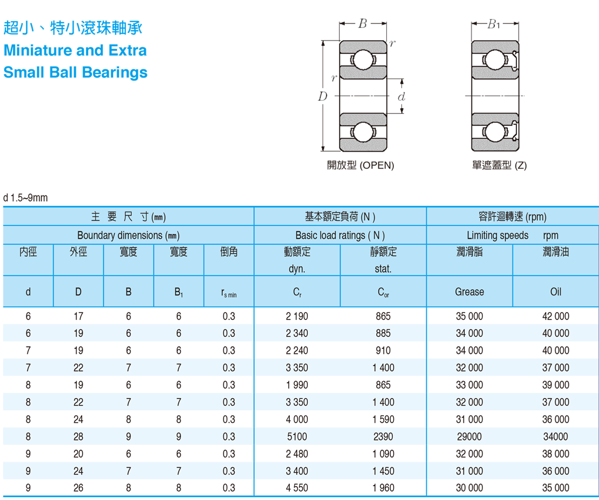 超小、特小滾珠軸承