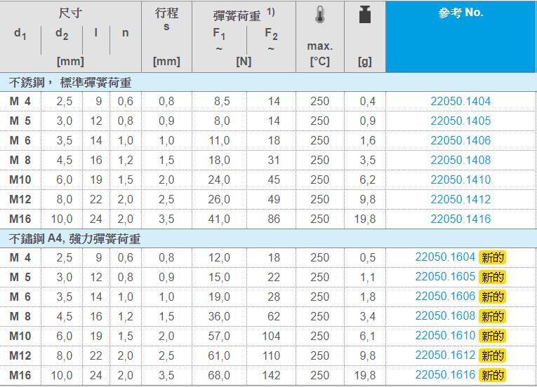 標(biāo)準(zhǔn)彈簧荷重:無標(biāo)示