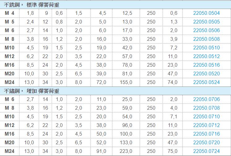 標準彈簧荷重:無標示