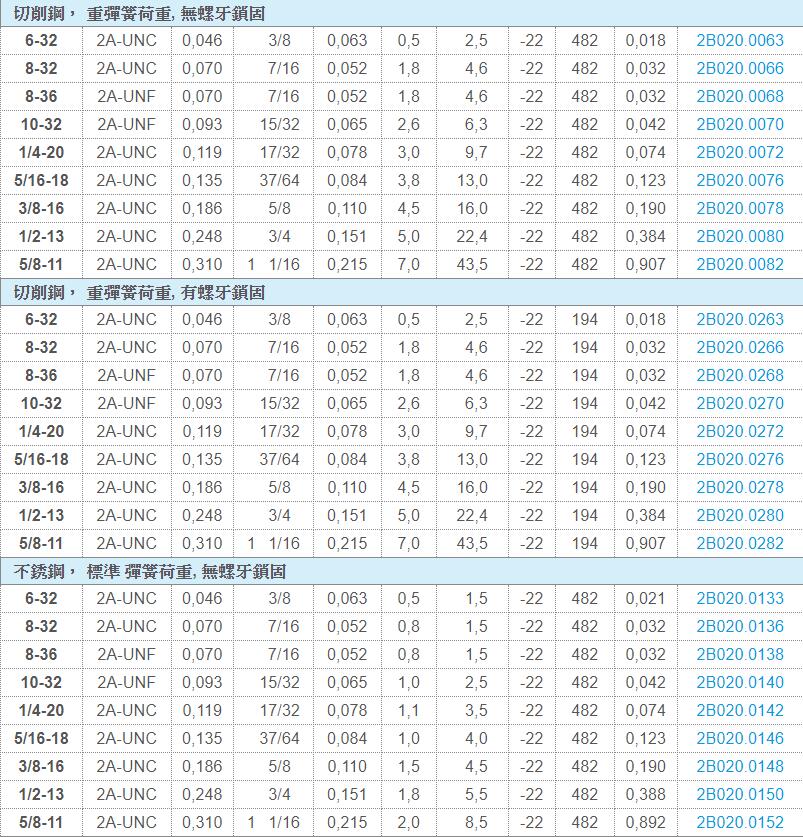 EH 2B020.帶螺栓和槽 - 英吋(72種規格)