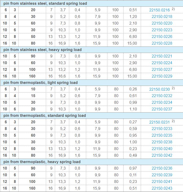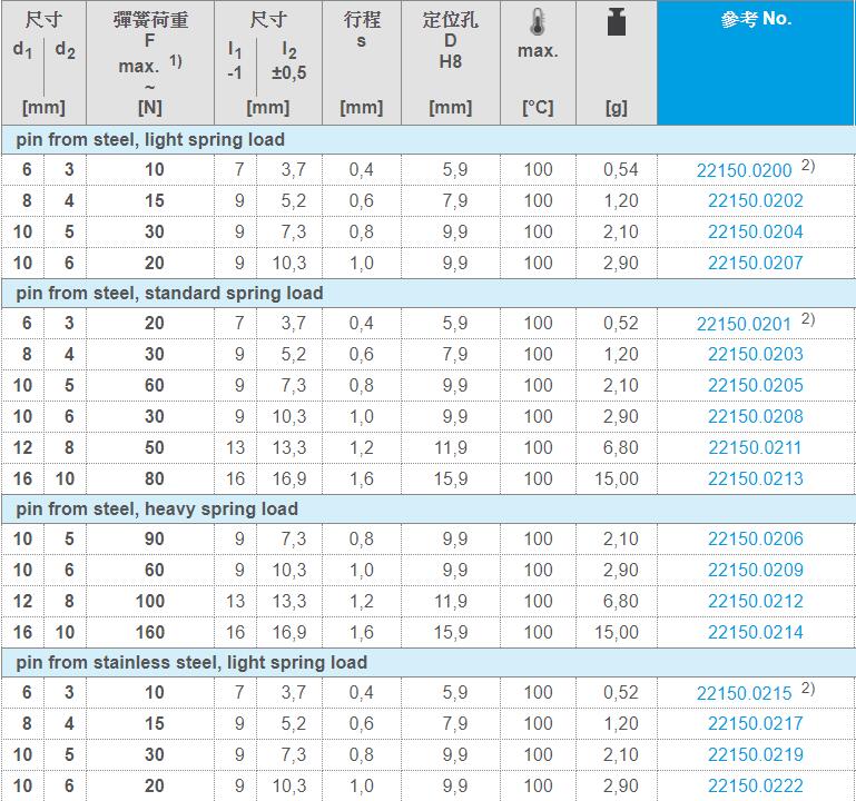 EH 22150.帶塑膠彈簧和銷(42種規格)