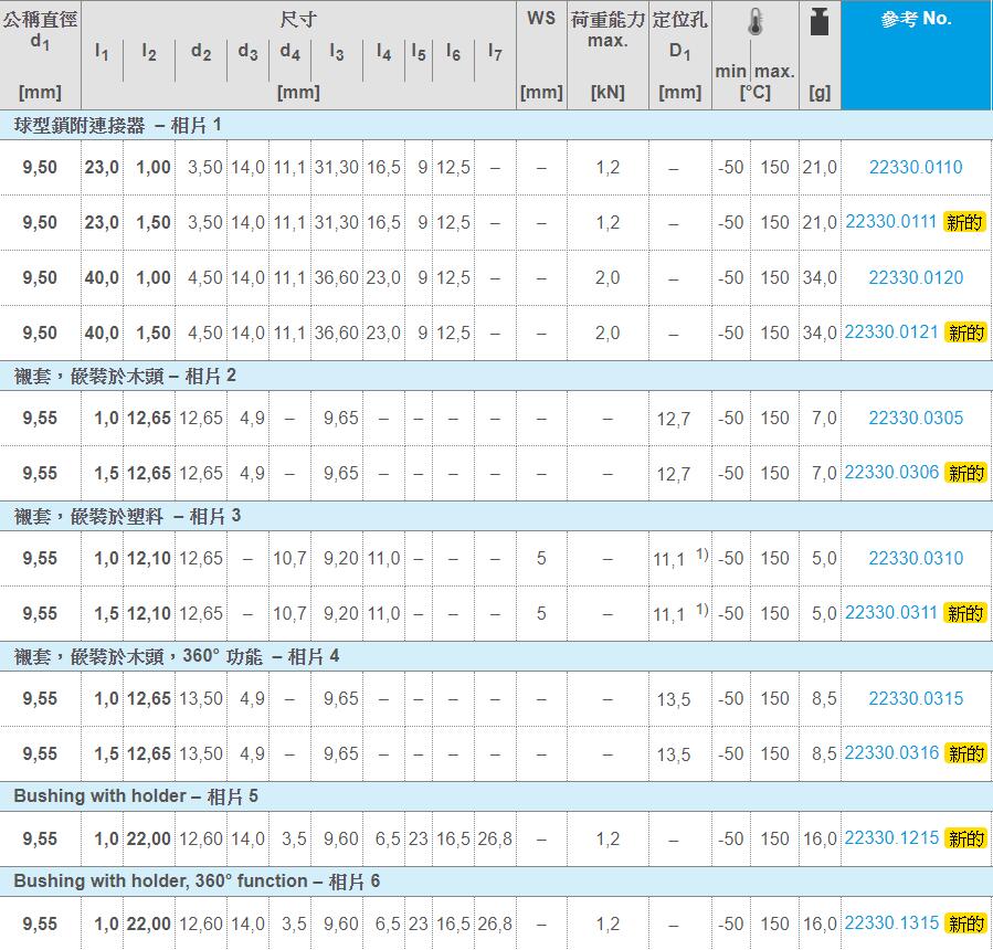 EH 22330.滾珠鎖附連接器 - 自行鎖附,帶把手(12種規格)