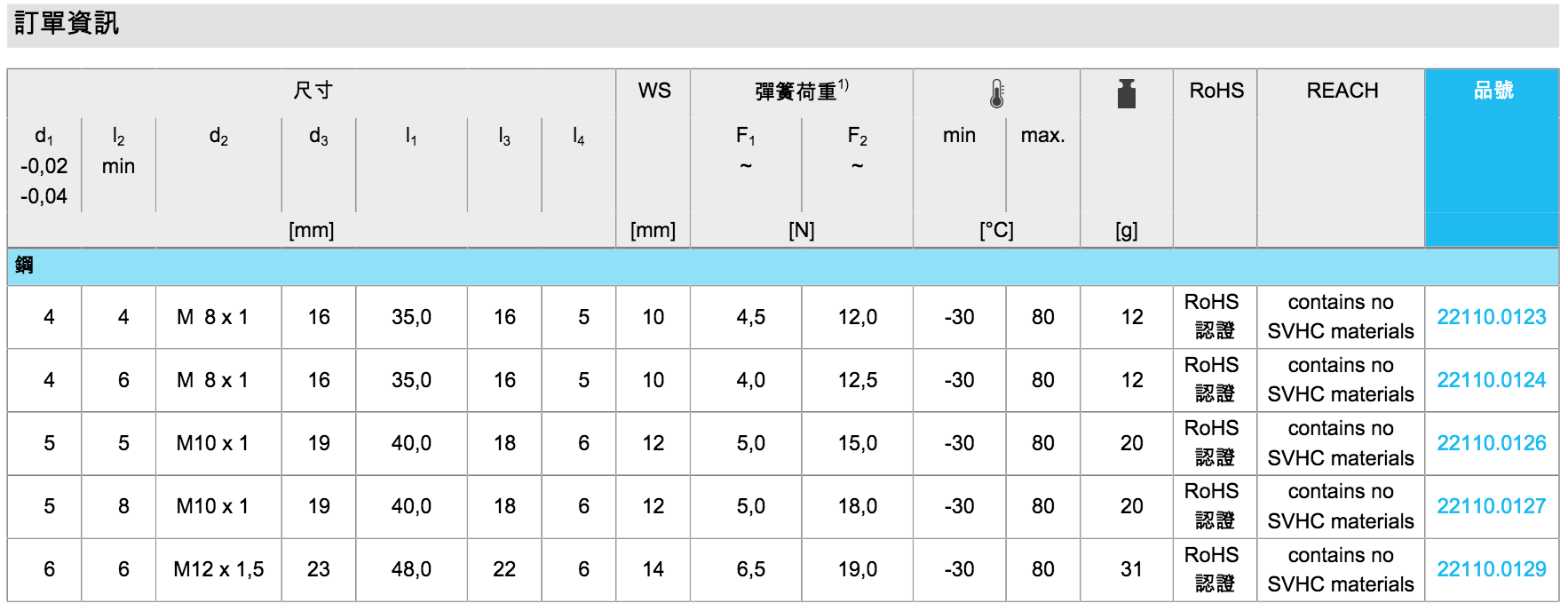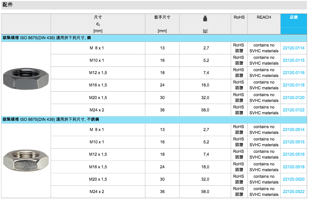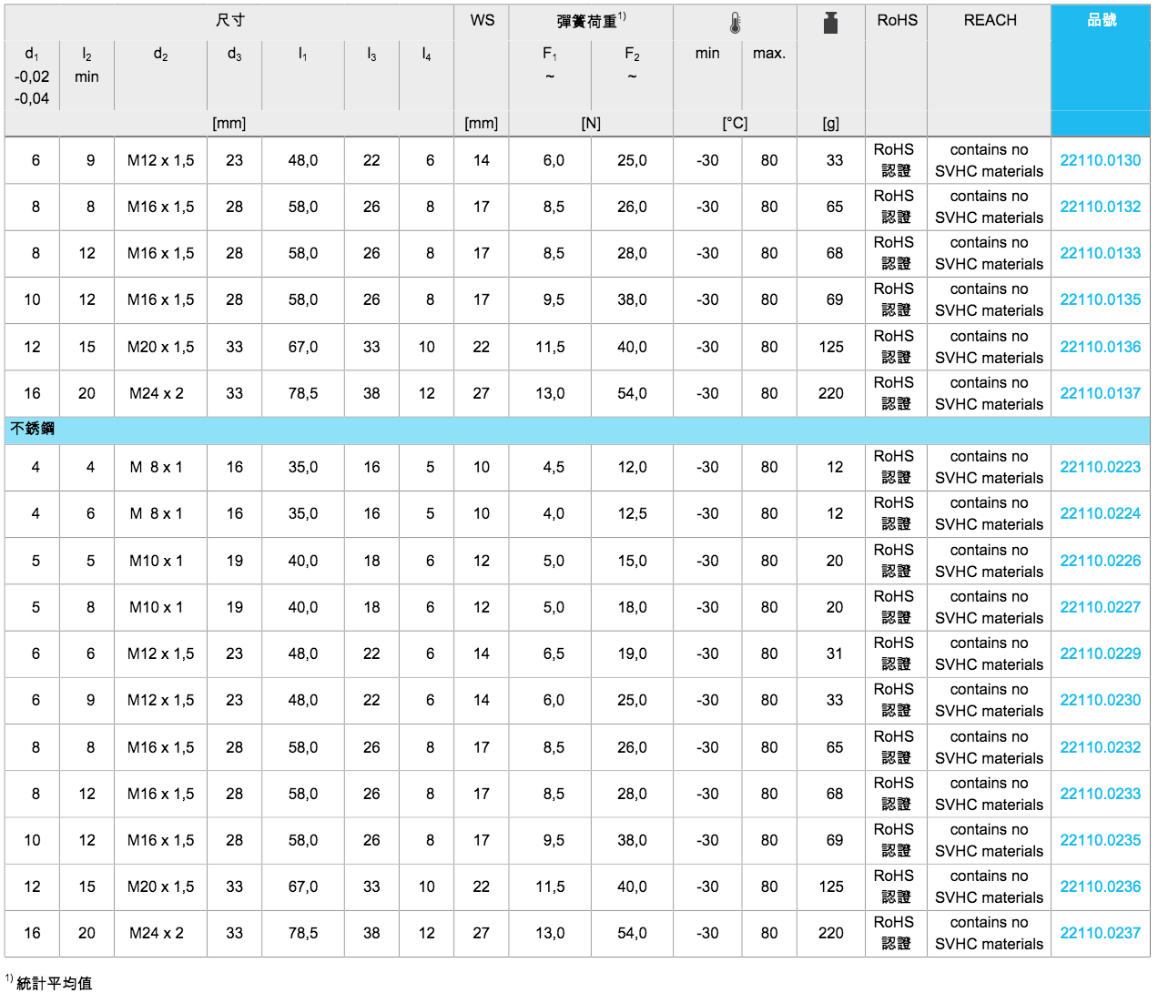 EH 22110.分割定位柱精實的 有六角環和鎖固(22種規格)