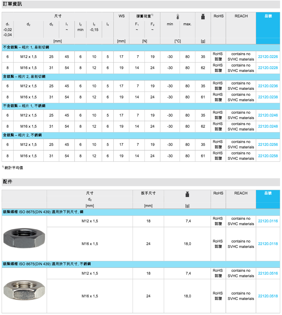 EH 22120.分割定位柱 有六角形軸環,短的(8種規格)
