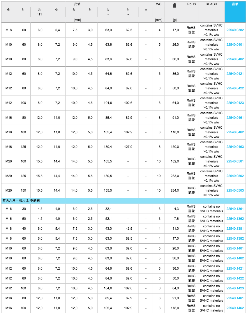 EH 22540.腳座螺絲 DIN 6332 有推力點(diǎn)型式S(60種規(guī)格)