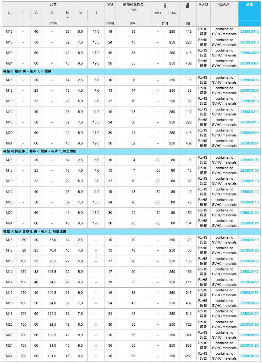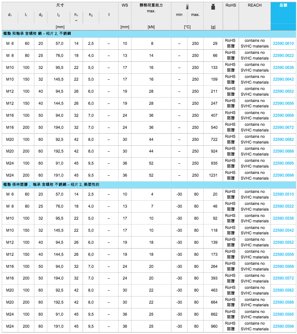對于版本d1 = M10和M12,鎖緊螺母符合DIN 934標準。