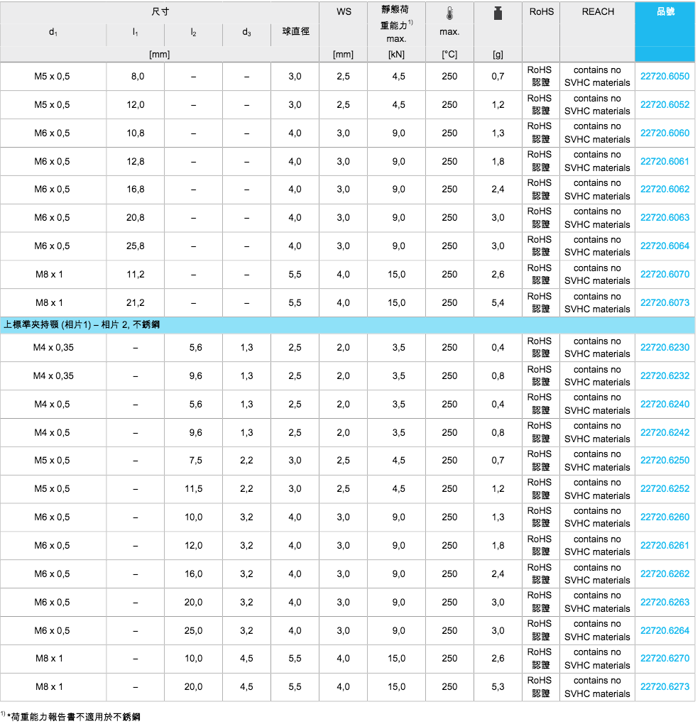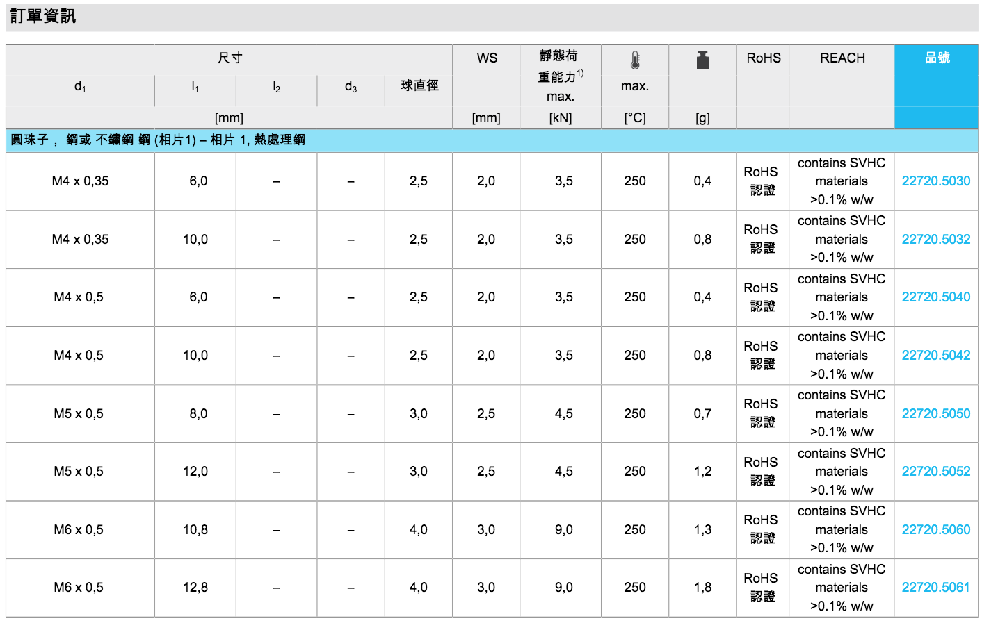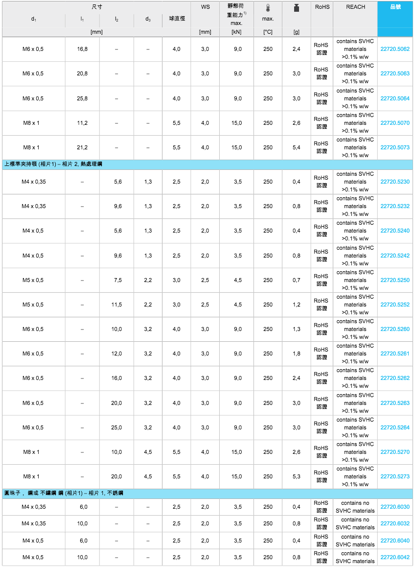 EH 22720.定位珠螺絲 無頭,附細螺紋(52種規格)