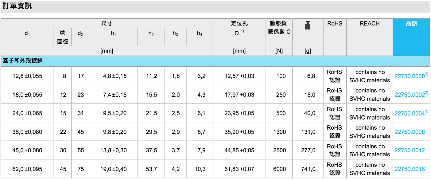 EH 22750.球形腳輪 有鐵板外殼(17種規格)