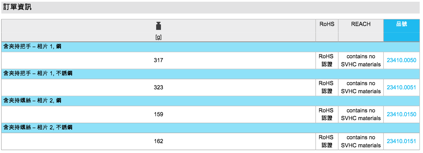 螺栓和華司是可調整的。一旦鎖附,夾持可以簡單的被旋轉到所需的位置。針對品號 23410.0050 / .0051,鋸齒可幫助將夾合桿放到所需位置。