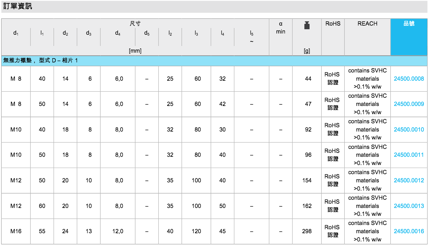 EH 24500.Tommy螺絲 DIN 6306 有移動梢(24種規格)
