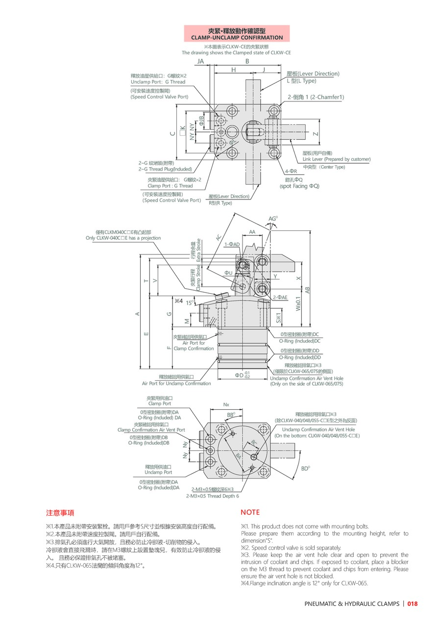此系列產品動作端內置有動作確認機構,最適用于實現設備的自動化。通過連接空氣傳感器,檢出壓差,實現確認動作。通過夾緊動作確認,能實現安全可靠地工件搬入搬出。內置傳感閥,可實現超薄型的夾具設計。 簡單的油路孔設計。