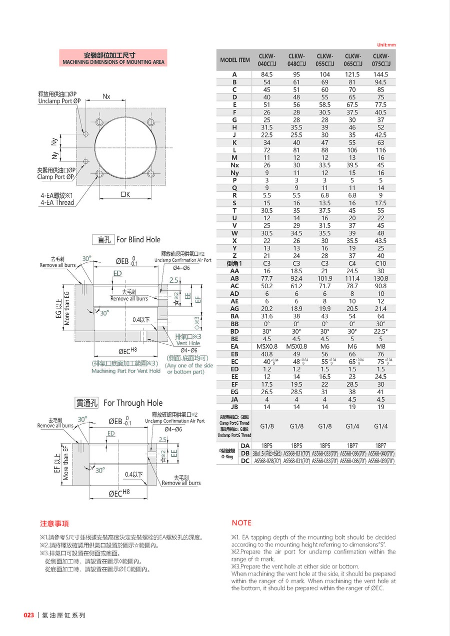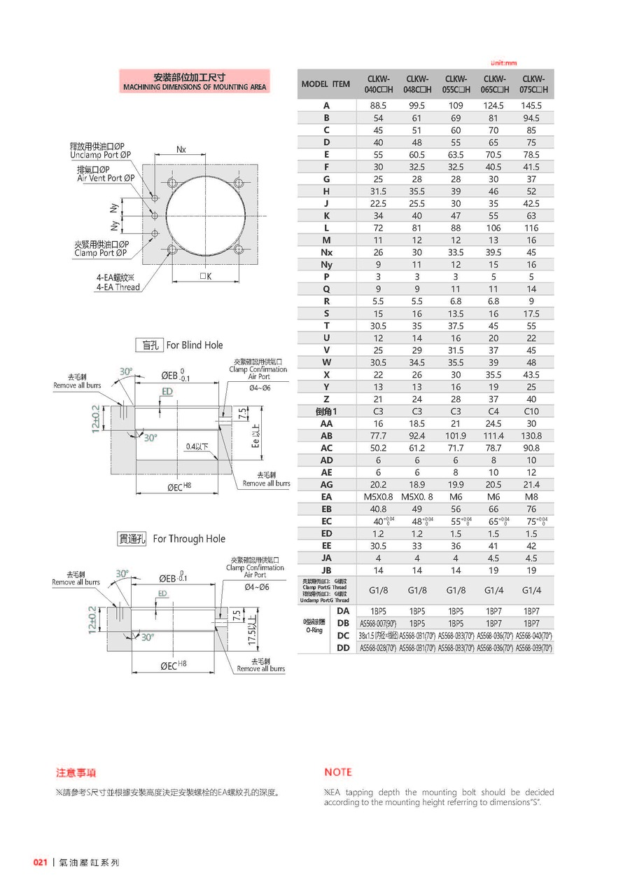 040: ?D=40mm, 048: ?D=48mm, 055: ?D=55mm, 065: ?D=65mm, 075: ?D=75mm(ΦD表示本體油缸外徑尺寸)