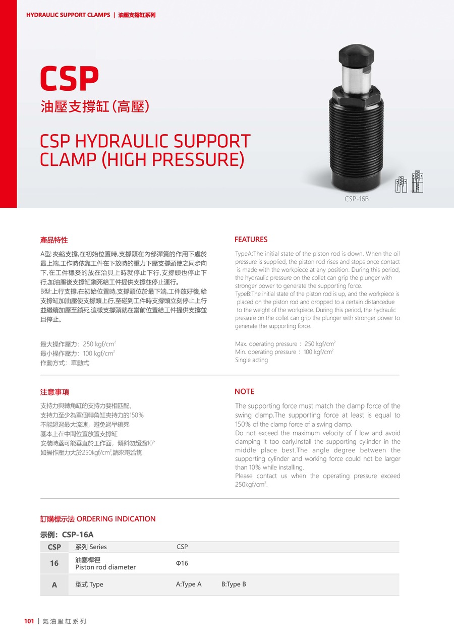 A 型: 夾縮支撐,在初始位置時,支撐頭在內部彈簧的作用下處于最上端,工作時依靠工件在下放時的重力下壓支撐頭使之同步向下,在工件穩妥的放在治具上時就停止下行,支撐頭也停止下行,加油壓后支撐缸鎖死給工件提供支撐并停止運行。