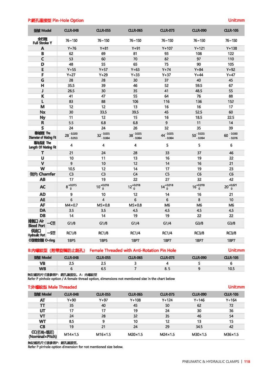 A: 內螺紋型, B: 內螺紋型(附帶旋轉防止銷孔), T: 外螺紋型, P: 銷孔連接型
