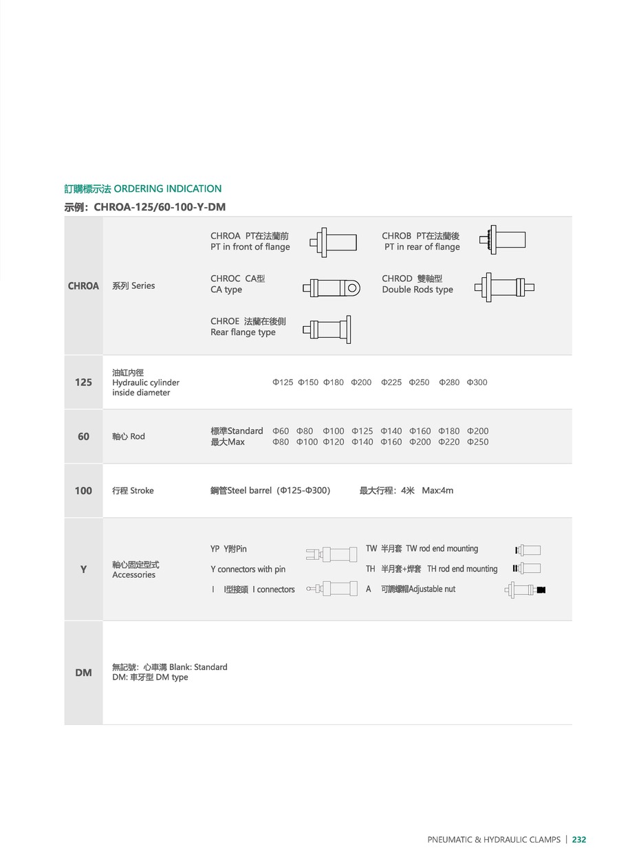 CHROA: PT在法蘭前, CHROB: PT在法蘭后, CHROC: CA型, CHROD: 雙軸型, CHROE: 法蘭在后側 |