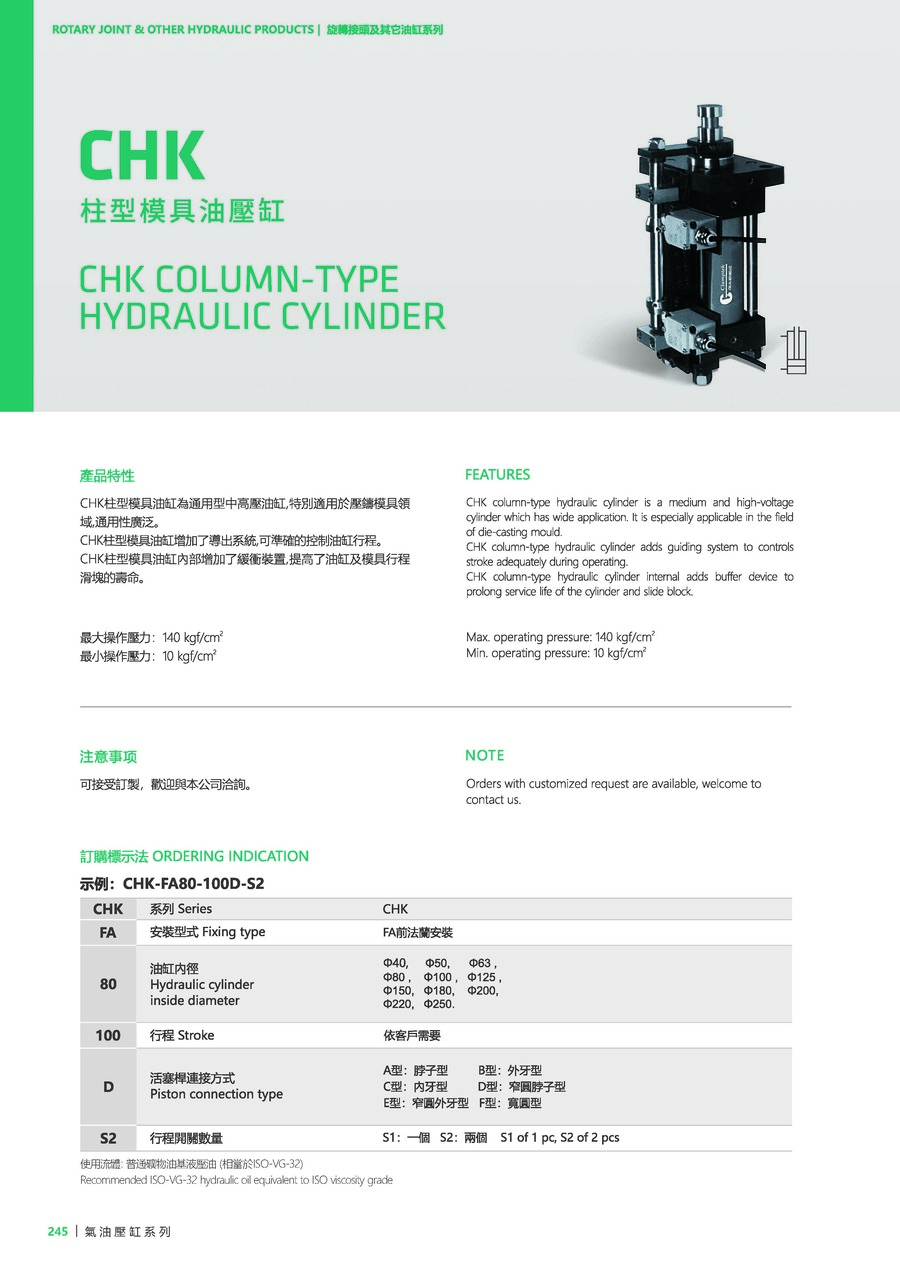 CHK柱型模具油缸為通用型中高壓油缸,特別適用于壓鑄模具領(lǐng)域,通用性廣泛。